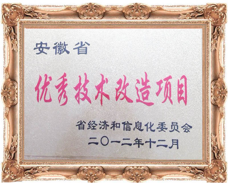 安徽省委,政府為促進(jìn)我省經(jīng)濟(jì)發(fā)展方式轉(zhuǎn)變,推動(dòng)工業(yè)經(jīng)濟(jì)又快又好的發(fā)展為目的,對(duì)于在推進(jìn)技術(shù)該著工作中做出貢獻(xiàn)的單位和個(gè)人進(jìn)行表彰,安徽環(huán)瑞憑借年產(chǎn)1200萬(wàn)米安全型自限溫電熱帶,發(fā)熱電纜技術(shù)改造項(xiàng)目,從眾多企業(yè)中脫穎而出,被安徽省經(jīng)信委授予“優(yōu)秀技術(shù)改造項(xiàng)目”也是安徽省同行業(yè)唯一家獲此殊榮,此項(xiàng)榮譽(yù)顯示了安徽環(huán)瑞生產(chǎn)規(guī)模已成為省領(lǐng)先,國(guó)內(nèi)先進(jìn)的電熱帶、發(fā)熱電纜生產(chǎn)基地。