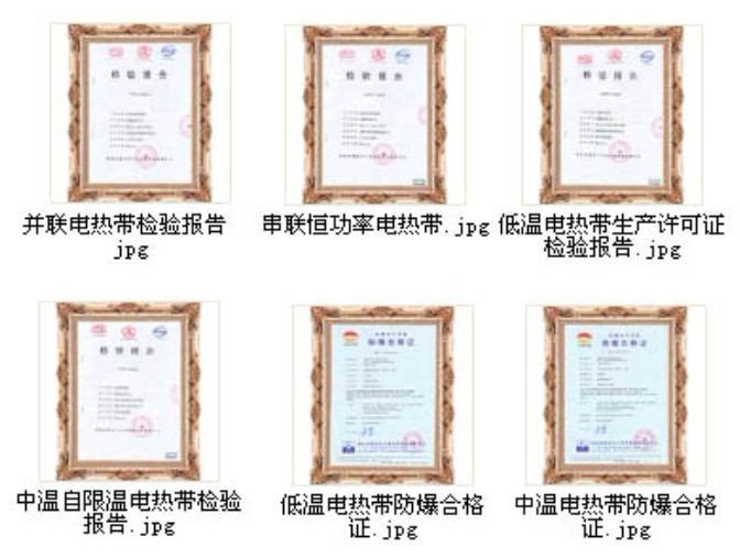 此外,我司針對石油、消防、電廠、天溝融雪、混凝土養護、汗蒸房等行業專用研發的電伴熱帶產品獲得了國家十三項專利證書.是全國電伴熱行業中產品資質最為全面的國家高新技術企業,專業的伴熱生產廠家。以上證書詳細見我司官網資質中心。