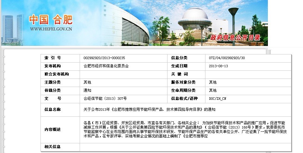 環(huán)瑞作為合肥經(jīng)濟(jì)科學(xué)建設(shè)道路上的重要成員,一直朝著“科技環(huán)瑞,電熱成就世界”的偉大藍(lán)圖邁進(jìn),其具有低電阻過渡層的自限溫電伴熱產(chǎn)品先后獲得省,市關(guān)于科技成果的榮譽(yù)有:合肥市科學(xué)技術(shù)獎(jiǎng),安徽省高新技術(shù)產(chǎn)品,合肥重點(diǎn)名牌產(chǎn)品。國家7項(xiàng)專利證書。其環(huán)保節(jié)能的特點(diǎn)已經(jīng)獲得政府、行業(yè)協(xié)會(huì),及市場(chǎng)的認(rèn)可。目前,環(huán)瑞公司已通過了合肥市推薦應(yīng)用節(jié)能環(huán)保產(chǎn)品、技術(shù)目錄的公示,獲得了環(huán)保節(jié)能產(chǎn)品稱號(hào),以下為合肥經(jīng)濟(jì)和貿(mào)易信息化委員會(huì)網(wǎng)站的公示內(nèi)容: