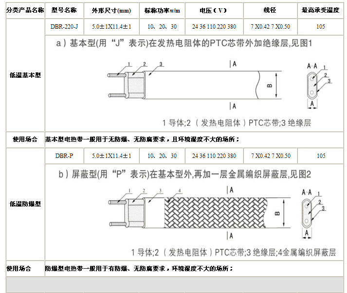 DBR-J 基本型電熱帶一般用于無防爆、無防腐要求,且環(huán)境濕度不大的場所;