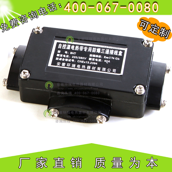 電伴熱帶產品接線盒分為電源接線盒,二通接線盒,三通接線盒及尾端接線盒等。電源接線盒是電伴熱帶與電源線之間起到連接而所使用的,再者就是二通接線盒與三通接線盒,這兩種接線盒在電伴熱系統里統稱中間接線盒,是用于電伴熱帶與電伴熱帶之間的連接樞紐,一個是直通型連接另一個是岔口型連接而已,而尾端接線盒是作為電伴熱系統中用于密封電伴熱帶尾部的一個配件。 對于一些復雜的管道諸如閥門等,這些管道較為復雜,管道的交叉不連續導致在安裝伴熱帶時無法正常連接,因此在這些區域需要使用二通或三通接線盒進行連接。 二通接線盒是滿足電伴熱帶在使用長度以內的連接,讓電伴熱帶的使用變得更為簡單,一般是采用硅膠來密封,固定件均為不銹鋼件。對于用戶在復雜性區域內使用接線盒時可以將伴熱帶截斷,在閥門槽池處用接線盒進行連接,具有方便安全的功效,因此電伴熱帶在連接時必有要使用線盒,它能讓用戶可以放心使用。